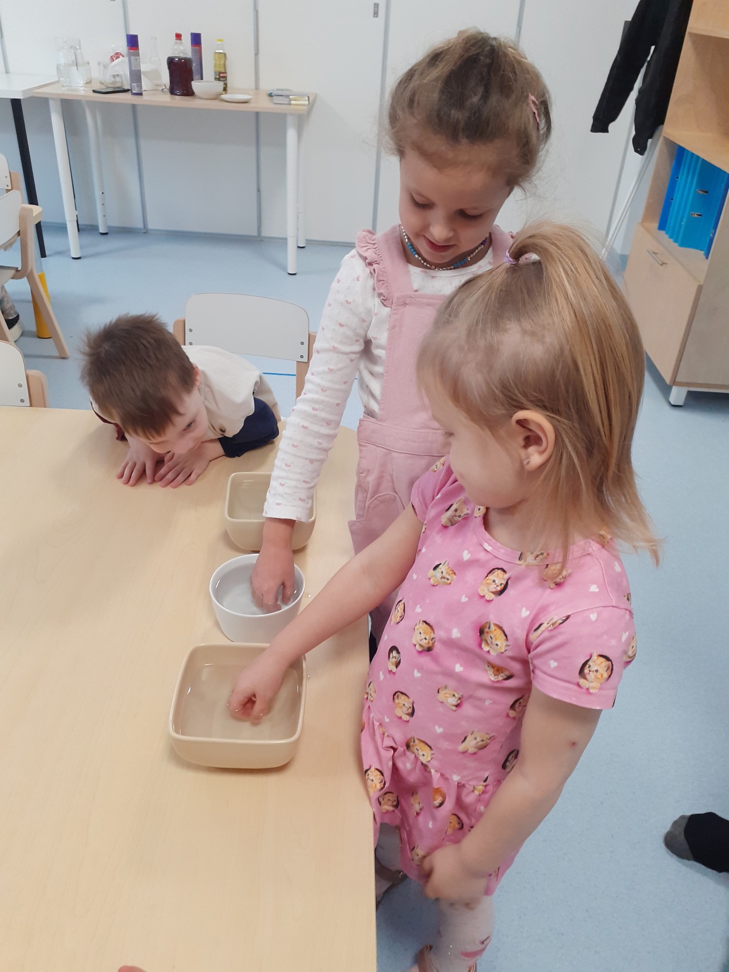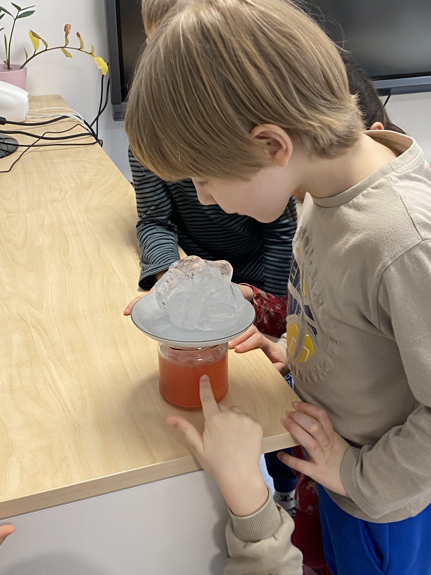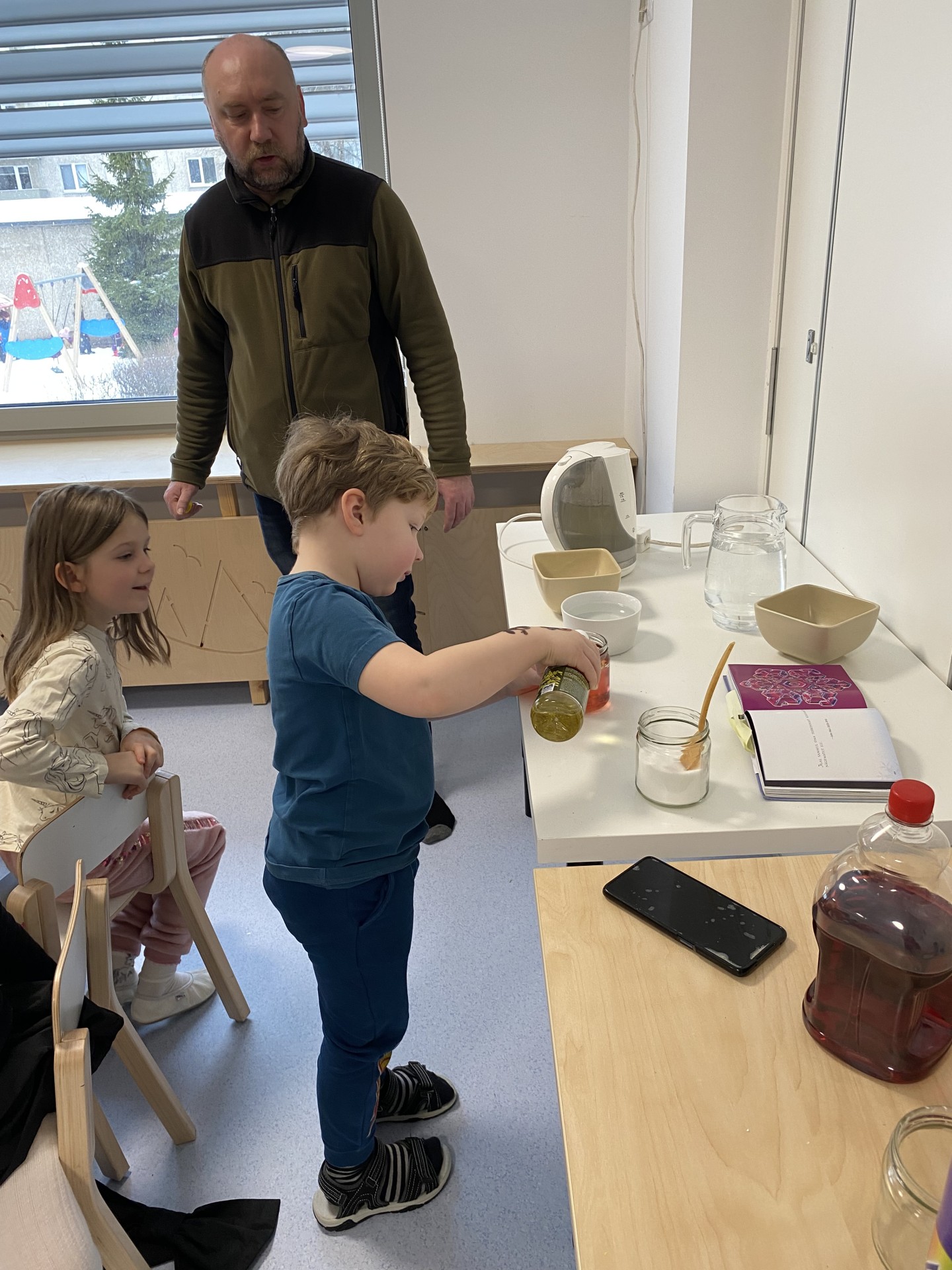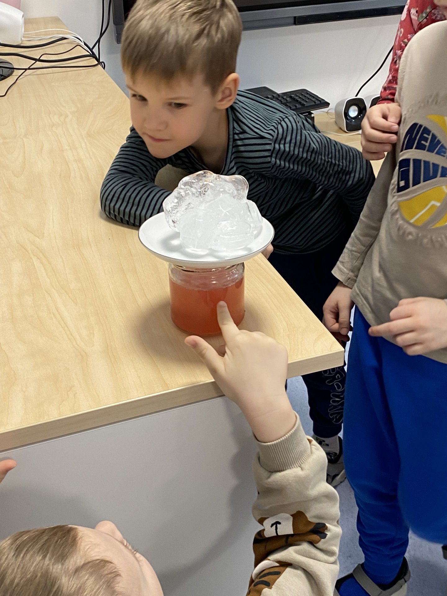 Lastele räägiti, kuidas tekib lumehelves, kuidas külm muudab vee jääks ning kuidas sünnib udu. Õpitut sai kohe ka katsetega kinnitada. Veega tehtud katses kallati klaasi siirup, vesi ja õli, et näha, kuidas erinevad vedelikud kihistuvad, ning seejärel lisati jäätükk, et jälgida, kuhu see vedelike vahel pidama jääb.