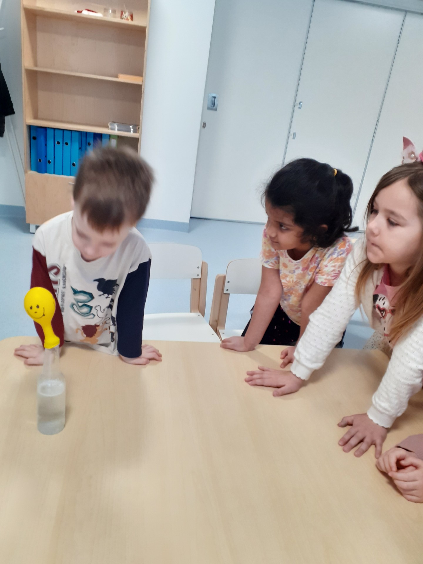 Veel jälgiti, kuidas süsihappegaasi tekitav tablett hakkas vees mullitama ning selle peale asetatud õhupall täitus õhuga, pakkudes lastele palju rõõmu ja üllatust.