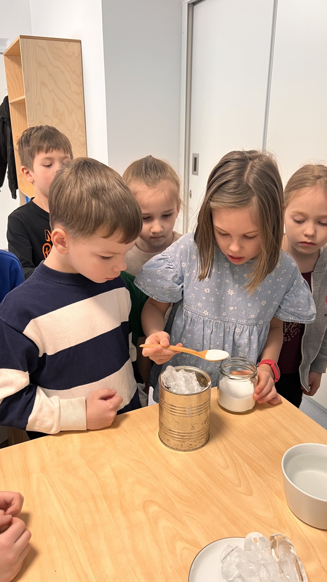 Põnevas katses pandi purki jää ja lisati soola, et jälgida jää sulamist. Seejärel viidi purk umbes kümneks minutiks õue, kus lapsed said näha, kuidas purgi pinnale tekib härmatis.