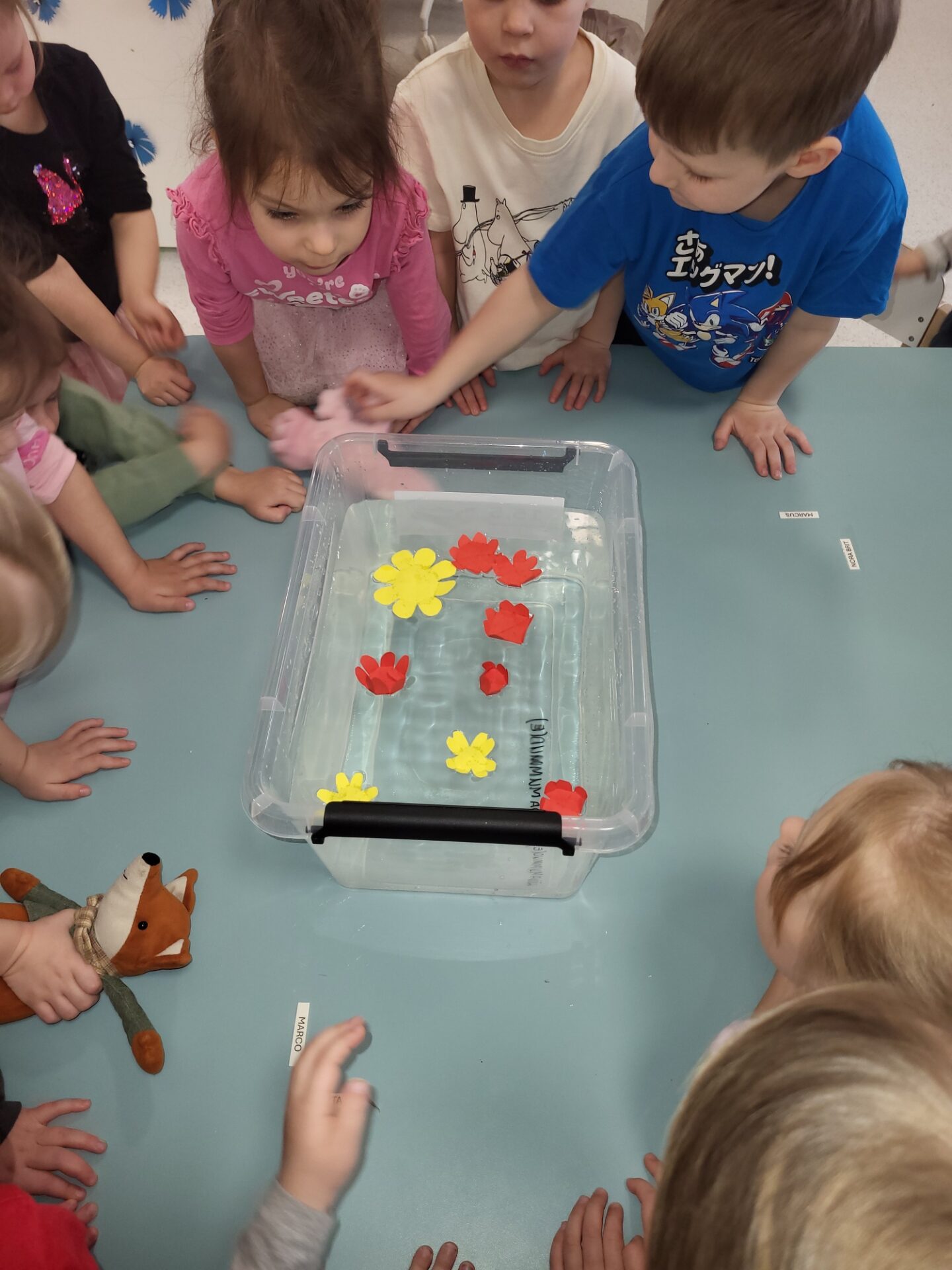 Lendoravate rühmas möödus nädal põnevate ning avastusrohkete katsetuste ja mängudega. Kastsime käed külma ja sooja vette, et tutvuda vee omadustega. Mängisime veemängu, kus lapsed tõstsid ja kallasid vett erinevate anumatega, arendades nii oma käelist osavust ja tähelepanu. Tegime katse liikuvast värvilisest veest, mis pakkus palju rõõmu ja imestust. Avastasime, kuidas lihtsate koduste vahenditega seebimullikesi puhuda ning milline üllatus peitub hüdrogeelist pallikestes. Veega tutvumine ja mängimine pakkus Lendoravate rühma mudilastele palju elevust ning avastamisrõõmu!